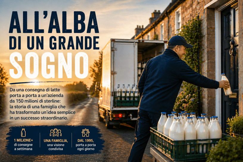 C’è qualcosa di quasi cinematografico nell’immagine di una famiglia che, quando la città ancora dorme, carica casse di latte su un’auto e parte per le consegne. È da una scena così semplice che prende forma la storia di due scozzesi che, con tenacia e spirito pratico, sono riusciti a trasformare un mestiere considerato ormai superato in un’impresa multimilionaria.